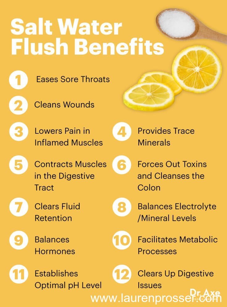 Lie on your right-hand side to ensure the water flushes through your stomach and into your intestines. *small tip when performing this is to stay close to a toilet for the next hour after having your salt water flush as it really does flush you out